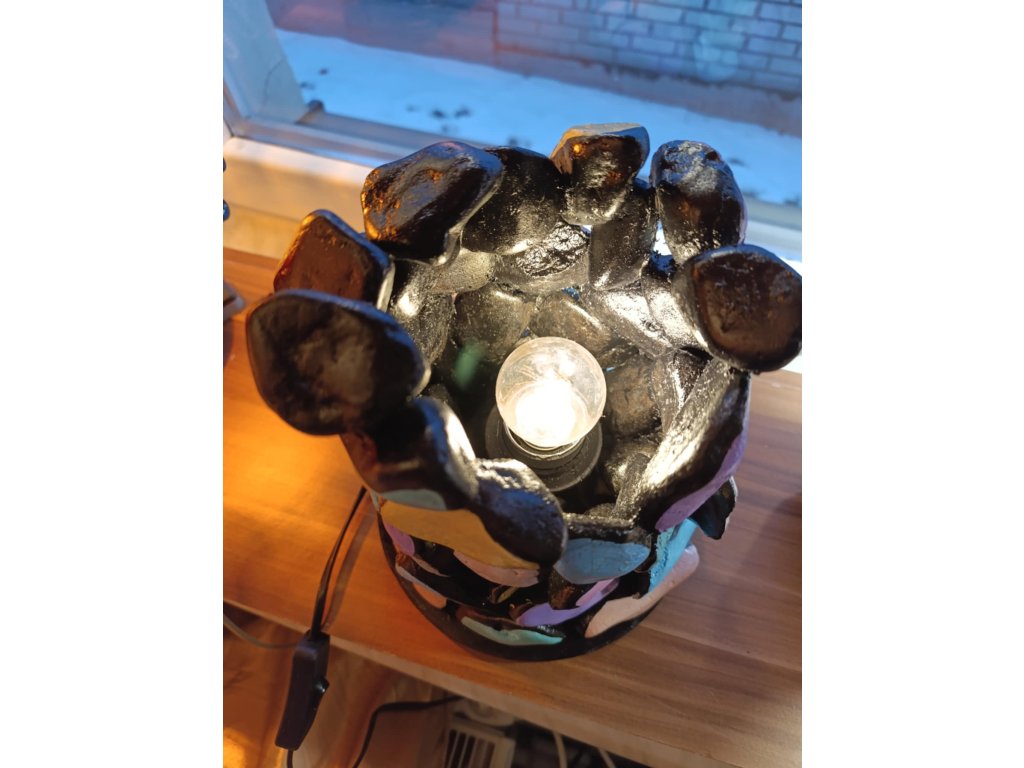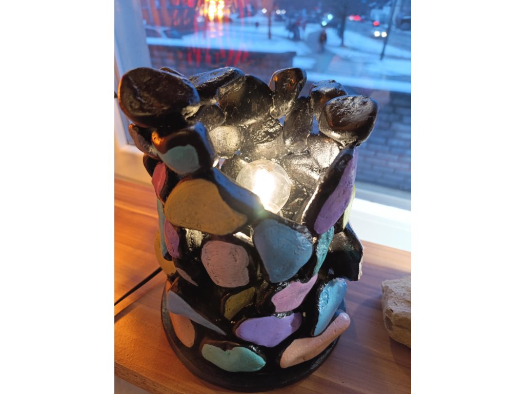 Světelný objekt vznikal postupně a bez předlohy. Od prvního tvarování až po finální barevné vrstvy byl celý proces veden ručně. Každý prvek je výsledkem práce s hmotou, světlem a barvou.